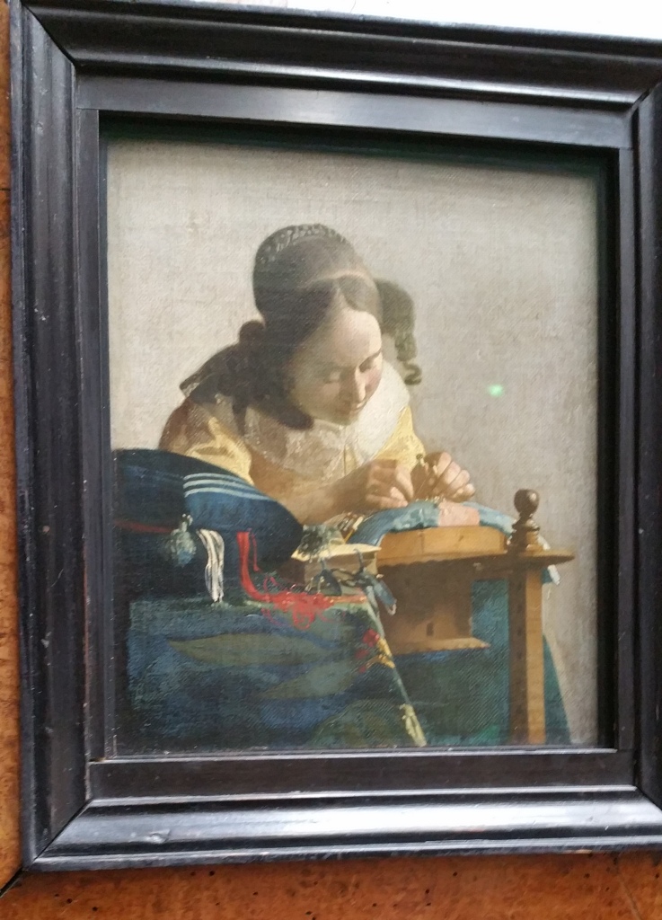 Other artists, fortunately, remain accessible or at least approachable. Vermeer’s The Lacemaker occupies an inconspicuous space but his fans don`t hesitate to stop by and examine the brilliant colours and brushwork. Other works by Constable. Pannini (the artist, not the sandwich), Van Dyck, Rembrandt, Delacroix et others too numerous to mention fill all the horizontal space in dozens upon dozens of rooms in all three wings. Too much to see in one day as one`s sense of wonder becomes dull after awhile.
