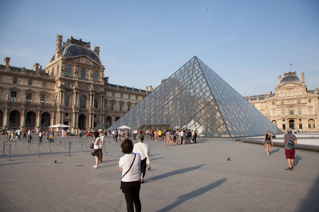 The heat wave continue unabated. Today, Friday, we’re expecting somewhere between 38 and 40. Our plan is to get to the subway early, enter the underground shopping concourse at the base of the Louvre and enter directly without going outside. I doubt the French do any usability testing on their signage because following the signs led us outside and on the wrong side of the security perimeter. Luckily the guard recognized us and let us back in. He says “just go down the stairs, it’ll be obvious.” Of course, what he means is that it will be obvious if you have done this a dozen times. It’s not and we ask several times for directions. Eventually we find the correct entrance.